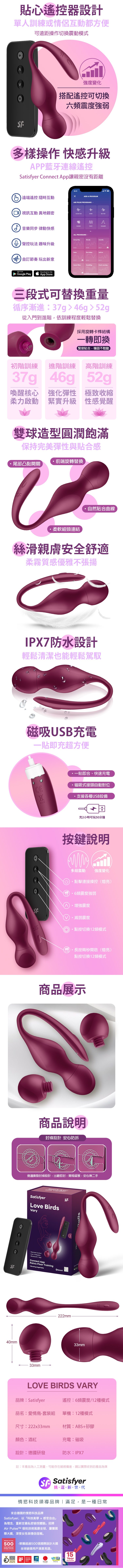 Satisfyer|Love Birds Vary|愛情鳥 凱格爾智能訓練球套組 暗紅
